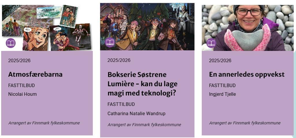 Har du oversikt over hvilke forfattere som kommer til din kommune – eller til en nabokommune? Litteraturturnéen gir gode muligheter for samarbeid. Kanskje kan forfatteren også inviteres til biblioteket, det kan lages en utstilling knyttet til besøket, kjøpes inn flere titler av samme forfatter, eller du kan være til stede på skolen når forfatteren kommer.