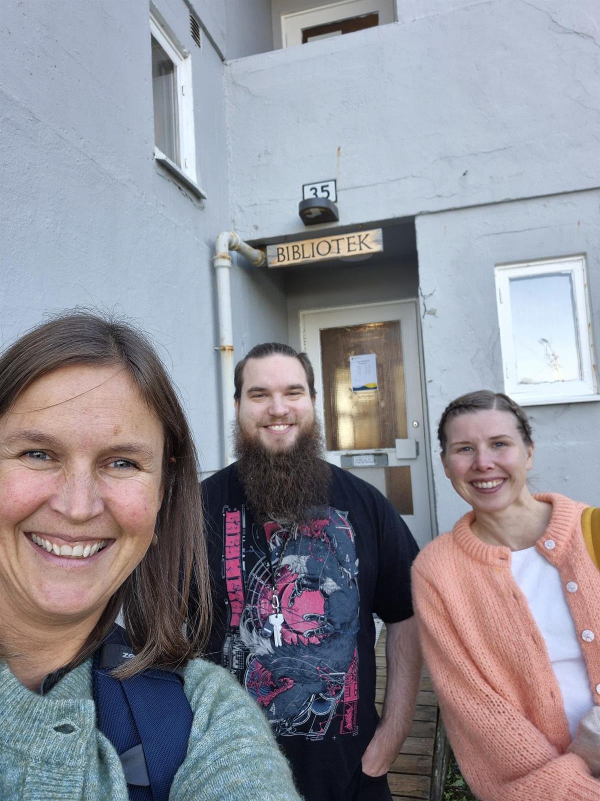 Selfie med ny biblioteksjef i Loppa og fylkesbiblioteket